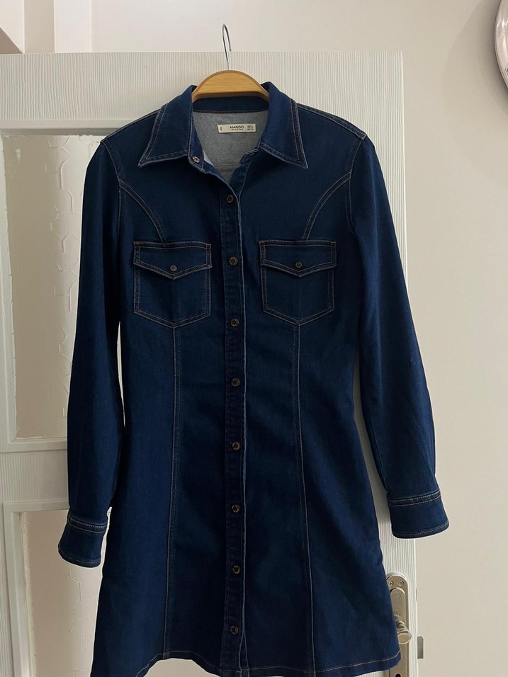 Lacivert renkte, düğmeli ön kapamalı, uzun kollu ve normal uzunlukta kadın denim cekettir. İki göğüs cebi ve notched yaka detayına sahiptir. Günlük kullanıma uygundur.