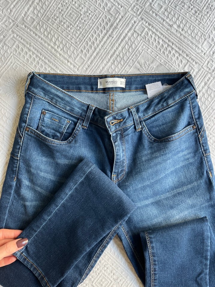 Mango markalı bu mavi denim jean pantolon, rahat bir kesim ve normal boy ile günlük kullanıma uygun, sade ve şık bir normcore tarz sunar. Görsellerde küçük gibi durmuş ama öyle değil 38 bedene tam oluyor isteyen müşterime deneyip gönderebilirim.