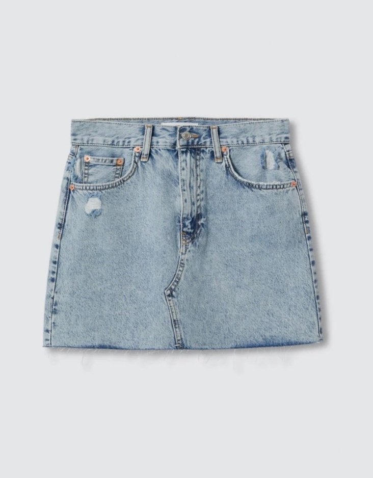 MANGO Kadın Mavi Denim Mini Etek Açık mavi denim mini etek. Günlük kullanım için minimalist ve zahmetsiz şıklık sunar. Kot kumaşı ve %100 pamuk içeriği ile yüksek kalite ve dayanıklılık sağlar. Uzun süreli kullanımda bile ilk günkü gibi kalır. Mango marka. Yeni ve etiketlidir xxs yani 32 bedene uygundur. #minietek #jeanetek #denimetek #xxs #32 #mango #mangoetek
