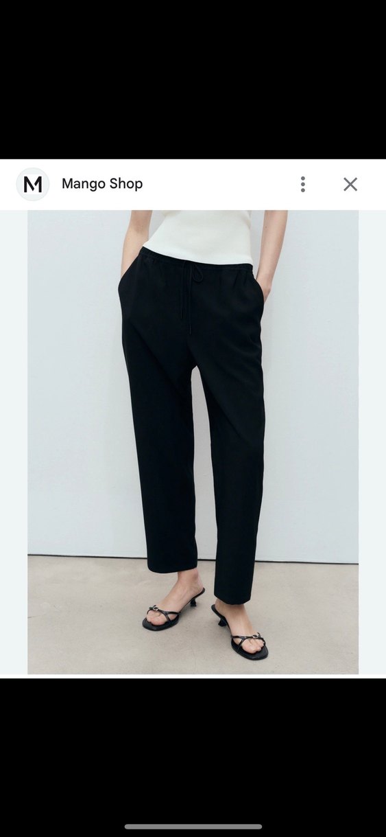 Siyah midi pantolon, rahat kesimi ve minimalist tarzıyla günlük kullanıma uygun, Mango ürünü.