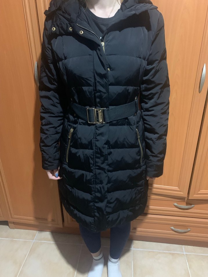 Kemer detaylı, notched lapel yakalı siyah kışlık mont. Fitted kesim, midi boy ve rahat dokulu kumaşla dış mekan kullanımına uygun. Şapkası çıkabilen.❄️
