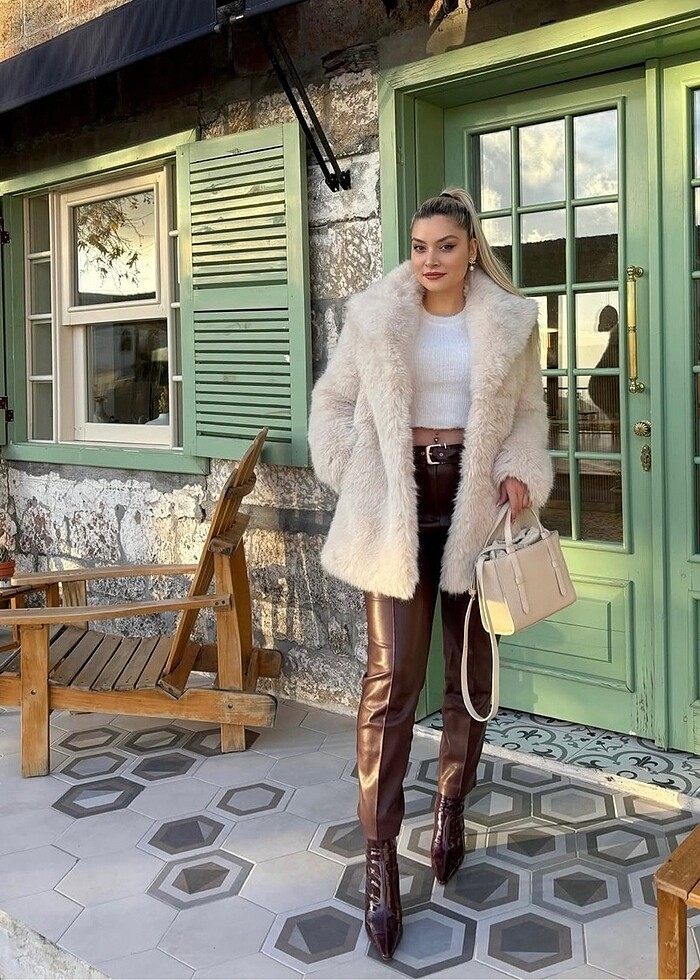 Mango kahverengi deri pantolon