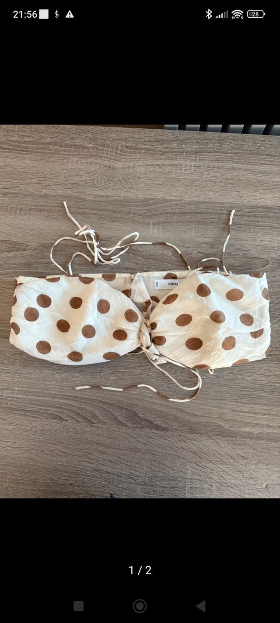 Mango bej renkte, kahverengi puantiyeli, minimal bohem tarzda kadın bralet. bir kere kullanıldı hiçbir kusuru yoktur temizdir