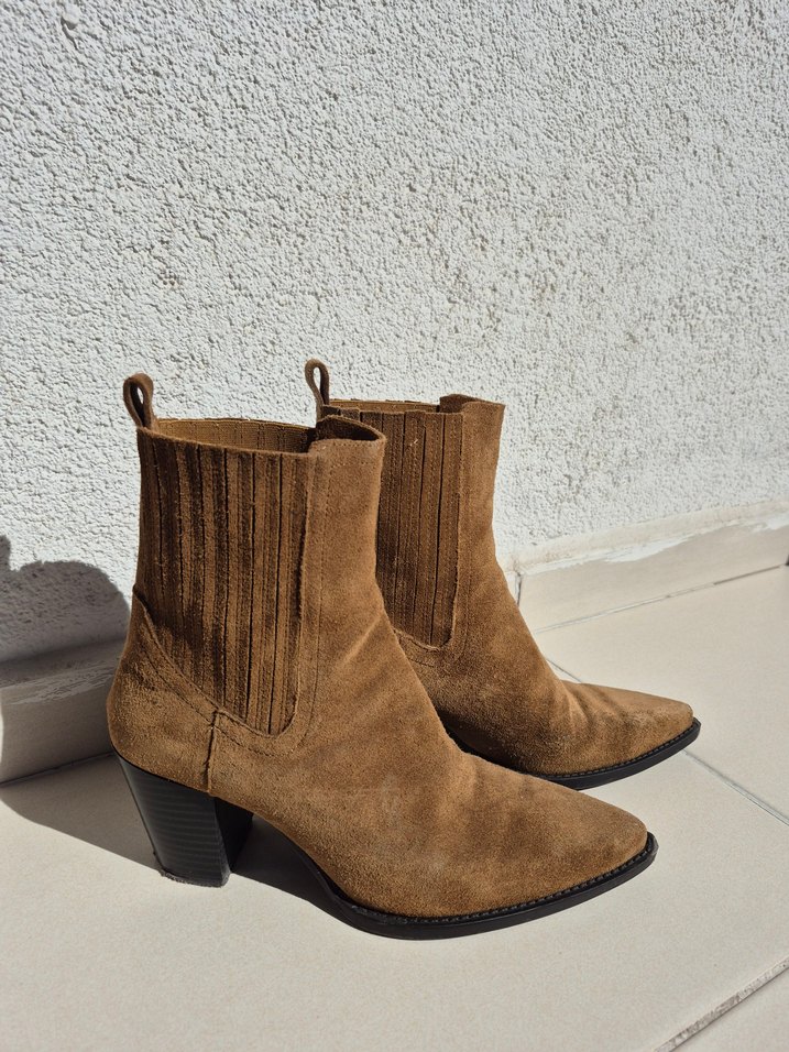 Kahverengi süet kadın botları, blok topuklu, günlük kullanıma uygun. 3 defa giydim yeni bir model almak istediğim için kullanmıyorum bu yüzden satıyorum.