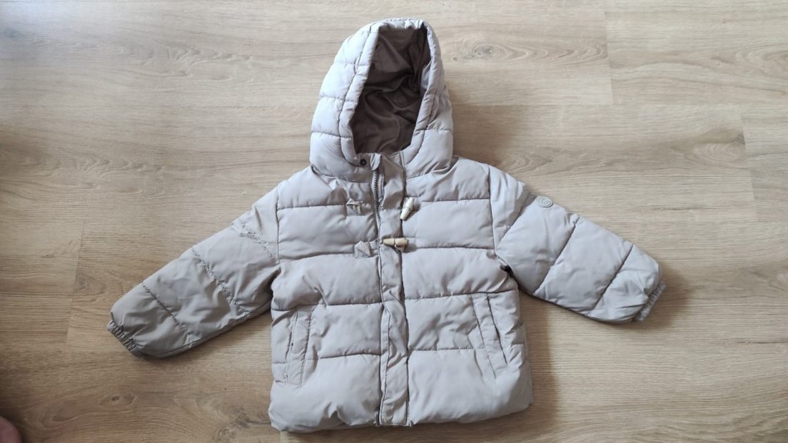 Mango Fermuarlı ve düğmeli kapüşonlu, bej renkte, yumuşak ve sıcak kumaştan üretilmiş, düz ve sokak stili erkek çocuk kabanı.