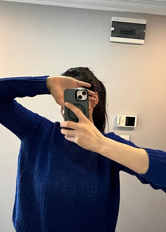 Saks mavisi, L beden ama M bedene daha iyi olur, kalıcı geniş değil. Delikli bir kumaşı var