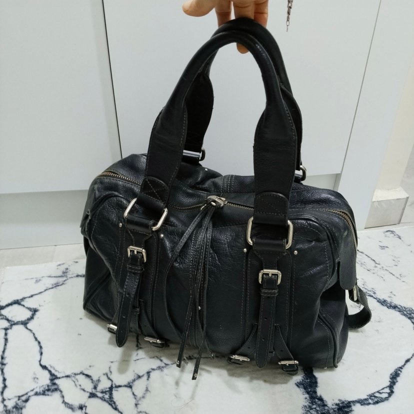 MANGO Kemer Detaylı Siyah Deri Kadın Çanta GERCEK DANA DERİ