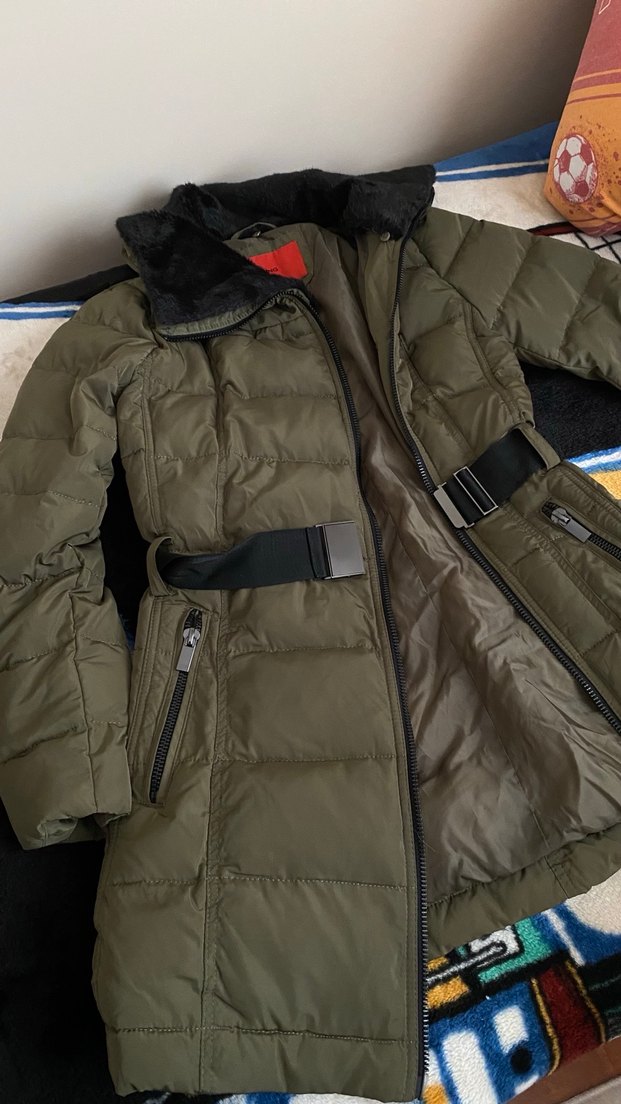 Mango Kemerli Haki Kadın Kışlık Mont