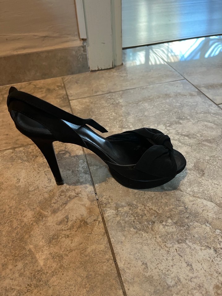 Kemerli fiyonk detaylı siyah platform topuklu kadın ayakkabısı, romantik akşamlar için ideal, klasik ve gotik tarzı bir arada sunar. Rubber malzemeden üretilmiştir. Sadece iç kısımlarda (dış görünüşünde hiç bir şey yoktur) soyulma var.