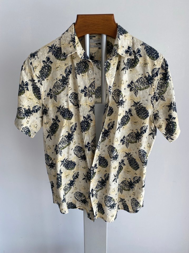 Mango Keten Düğmeli Kısa Kollu Ananas Desenli Erkek Gömlek