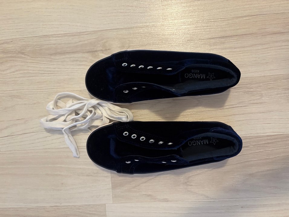 Mango Kids’ten enfes bir model… Üzerine bağcıklarını bile takmamışız, hiç giyilmeden küçülmüş. Sıfır ürün, lacivert renk, yumuşak dokulu. Kauçuk tabanlı, günlük kullanım için çok uygun.