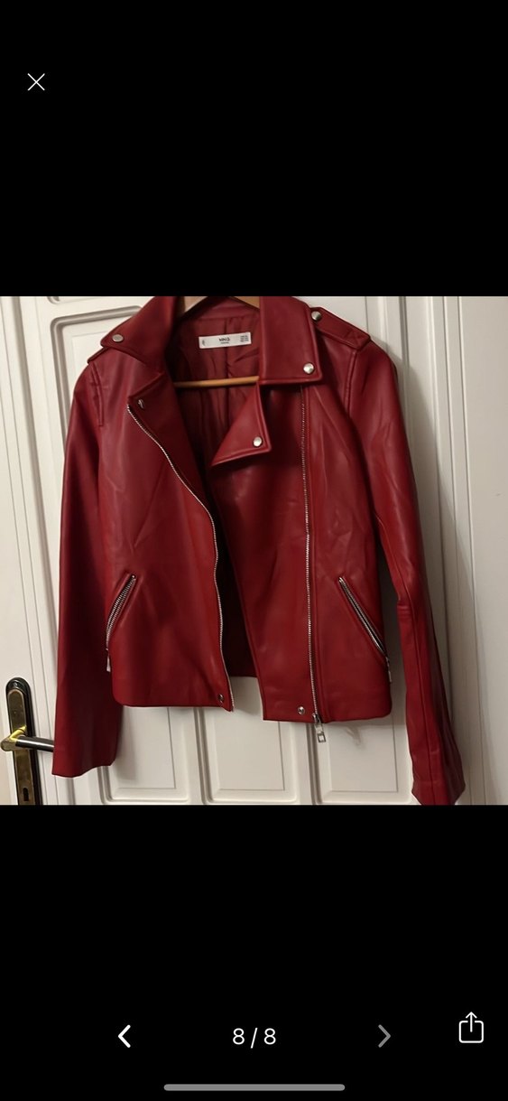 Mango Kırmızı Deri Biker Ceket 34 beden