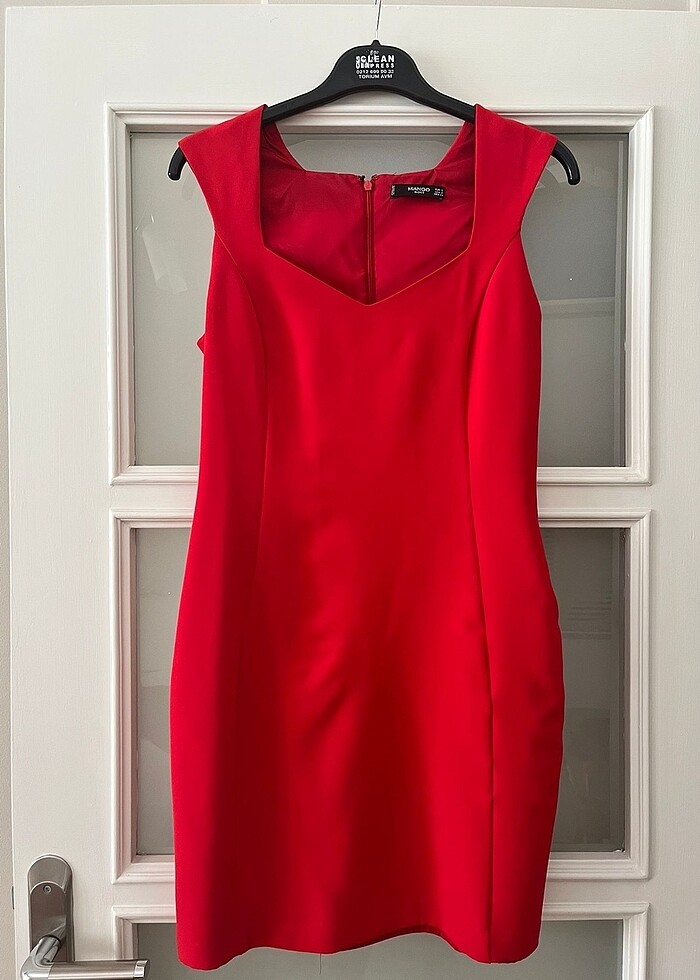 Mango kırmızı, kare yaka benzeri elbise. Boyu çok mini değildir. Çok az kullanıldı