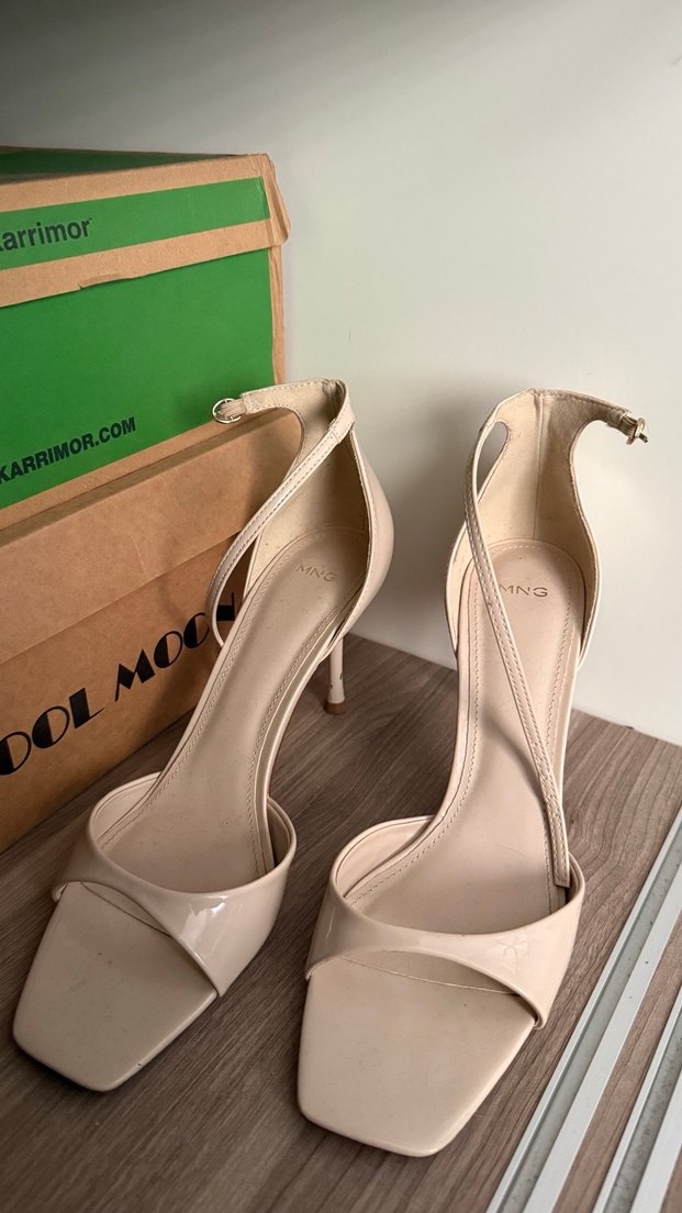 Mango krem Rugan Bantlı Stiletto Topuklu Kadın Ayakkabı