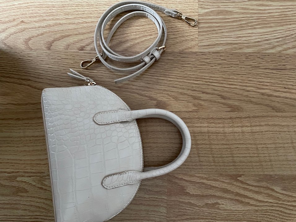 Mango Krem Yılan Derisi Desenli Deri Kadın Çanta