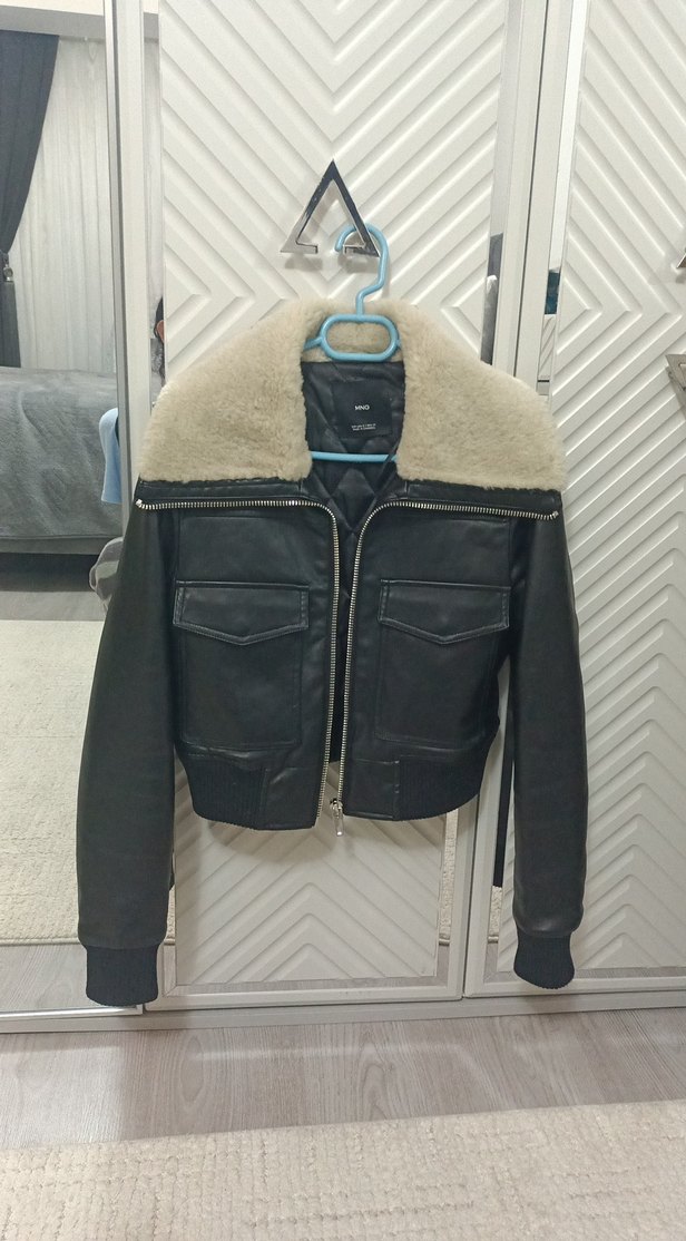 Kürk detaylı yakası ve uzun kollu, deri ceket. Sokak stiline uygun, normal boyda ve vücuda oturan kesim. Desensiz, günlük kullanıma uygun. 1 sefer giyildi yepyenidir