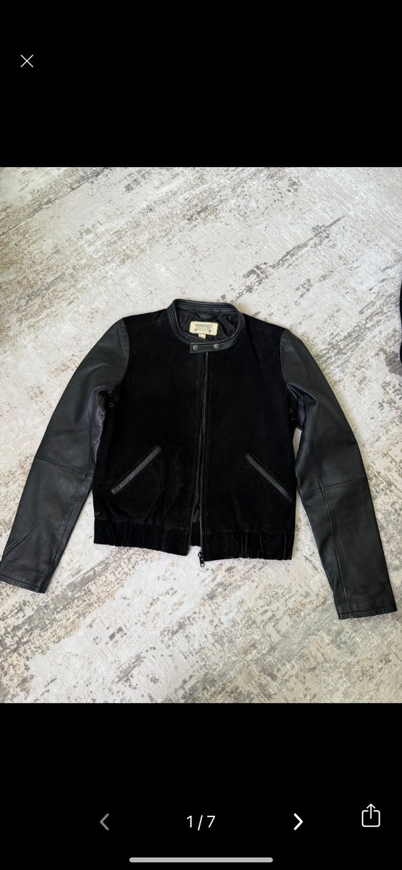 Mango Kürk Detaylı Siyah Deri Kadın Ceket