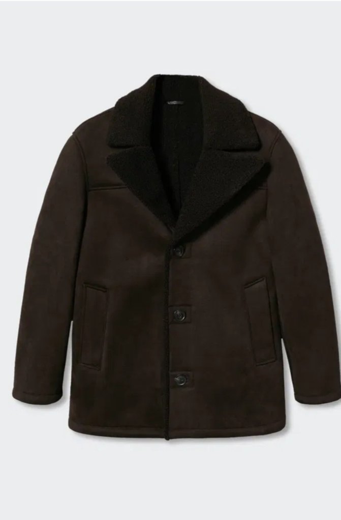 mango kürklü erkek astarlı ceket kaban. süet erkek ceket, düğmeli ve kesik yakalıdır. Normal kesim, uzun kboydadır.