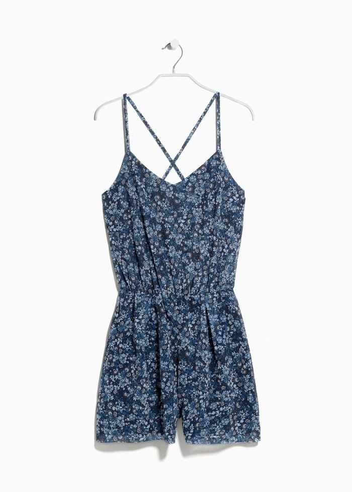 Mango Lacivert Çiçek Desenli Askılı Kadın şort Tulum