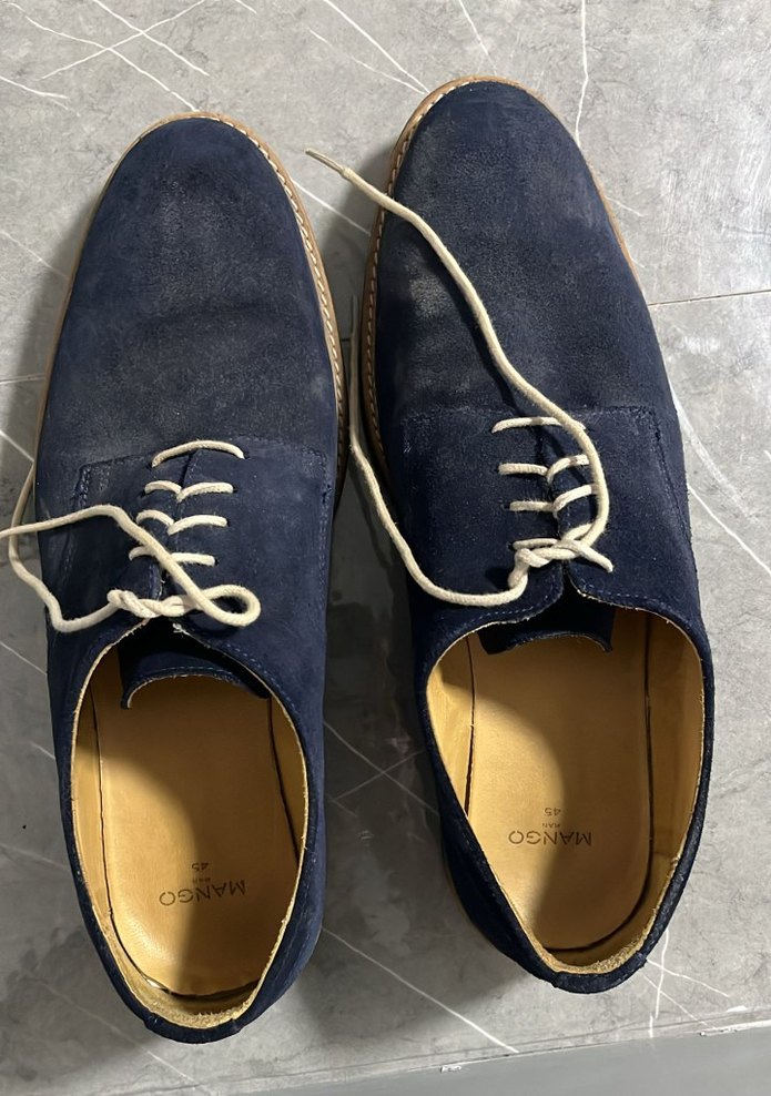 Mango'nun bu erkek klasik ayakkabısı lacivert süet üst yüzey, gri bağcıklar ve taba taban eski bir ayakkabı artık giymediğim için satmak istiyorum 46 numara