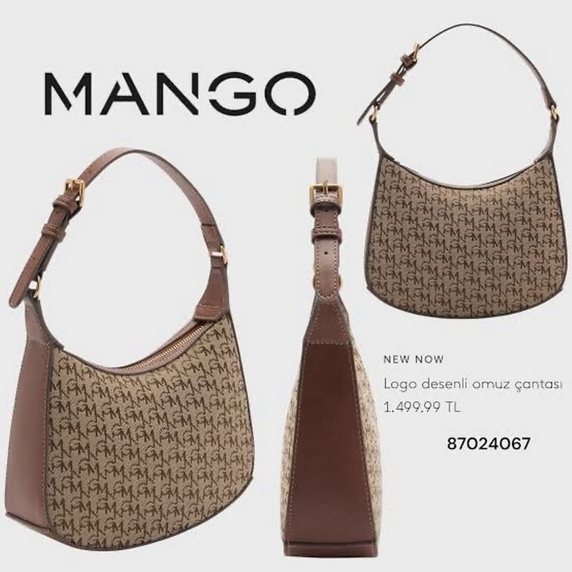 Mango Logo Desenli Kahverengi Deri Kadın Çanta