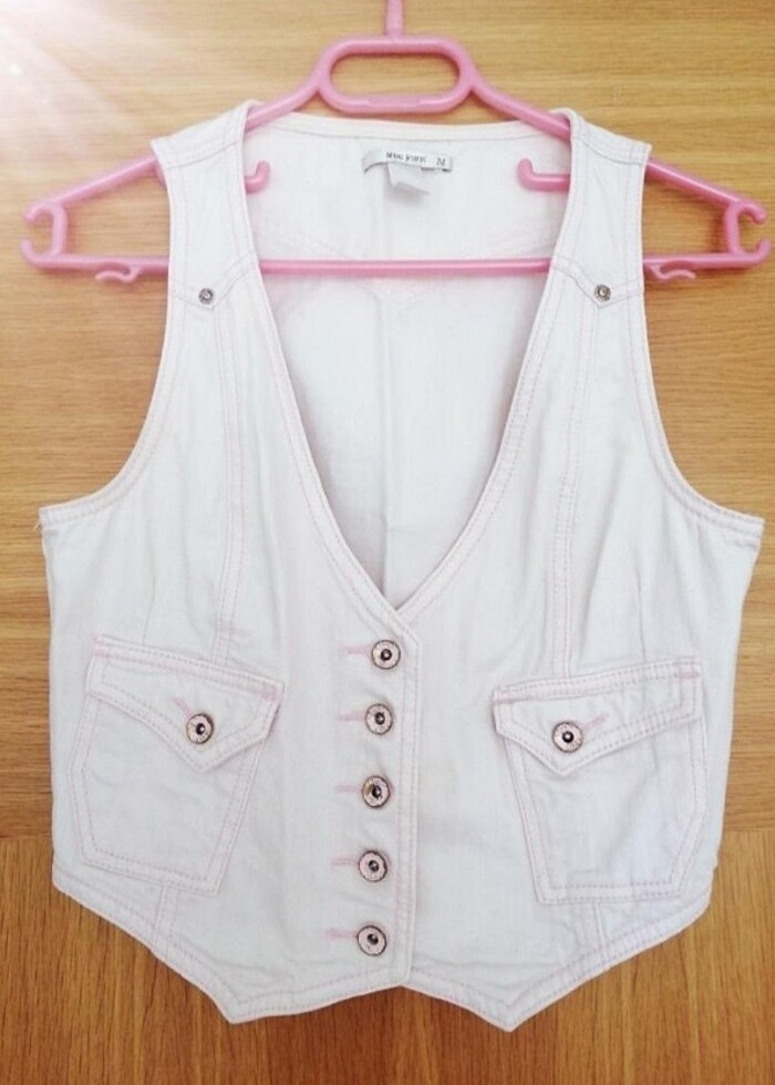 M bedene uygun toz pembe eskitilmis kumas kot yelek. Uzunluk: 40 genişlik: 43
