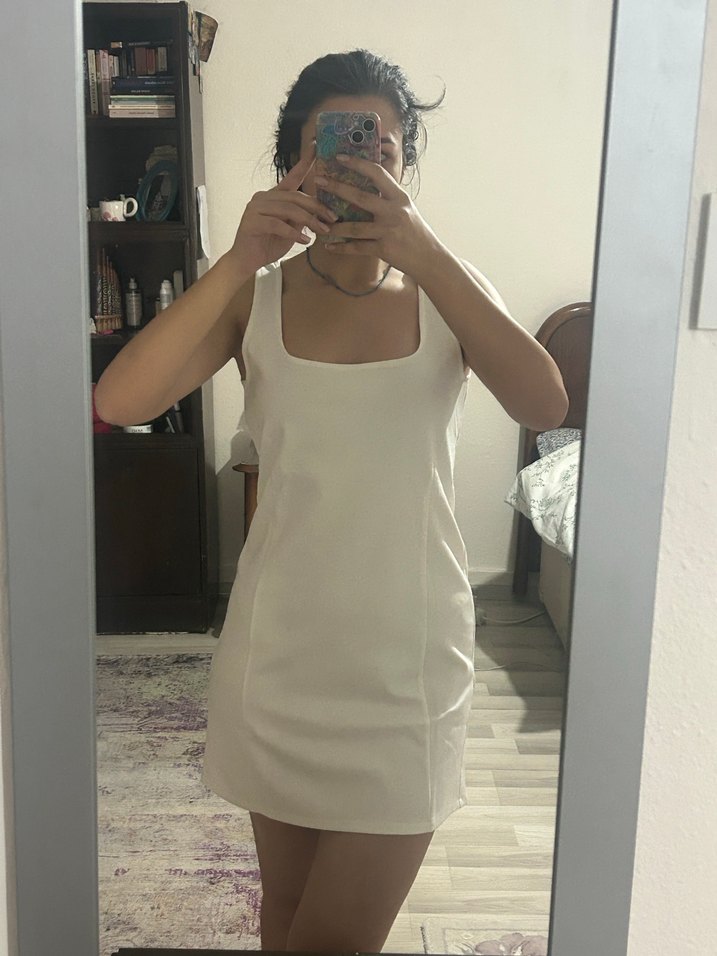 Mango M Etiketli Beyaz Kolsuz Elbise