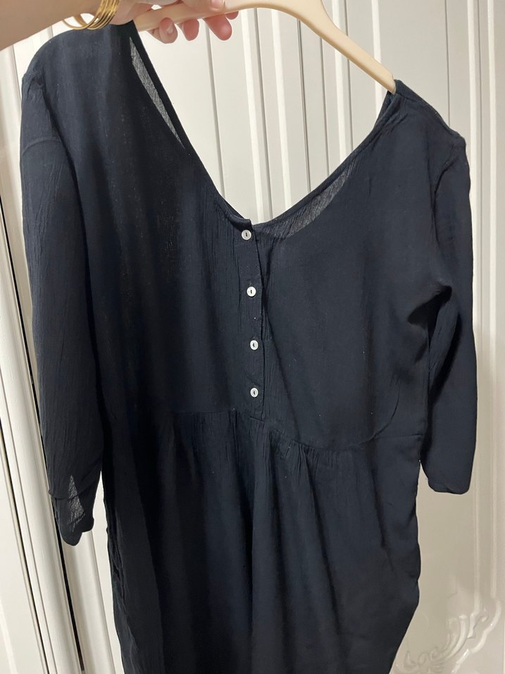 Nefes alabilir viscon kumaştan, düğmeli ön kısmı ve V yaka ile siyah, bol kesim Uzun kollu ve midi boyda, rahat günlük kullanım için uygundur. Mango orjinal üründür tulum elbisedir