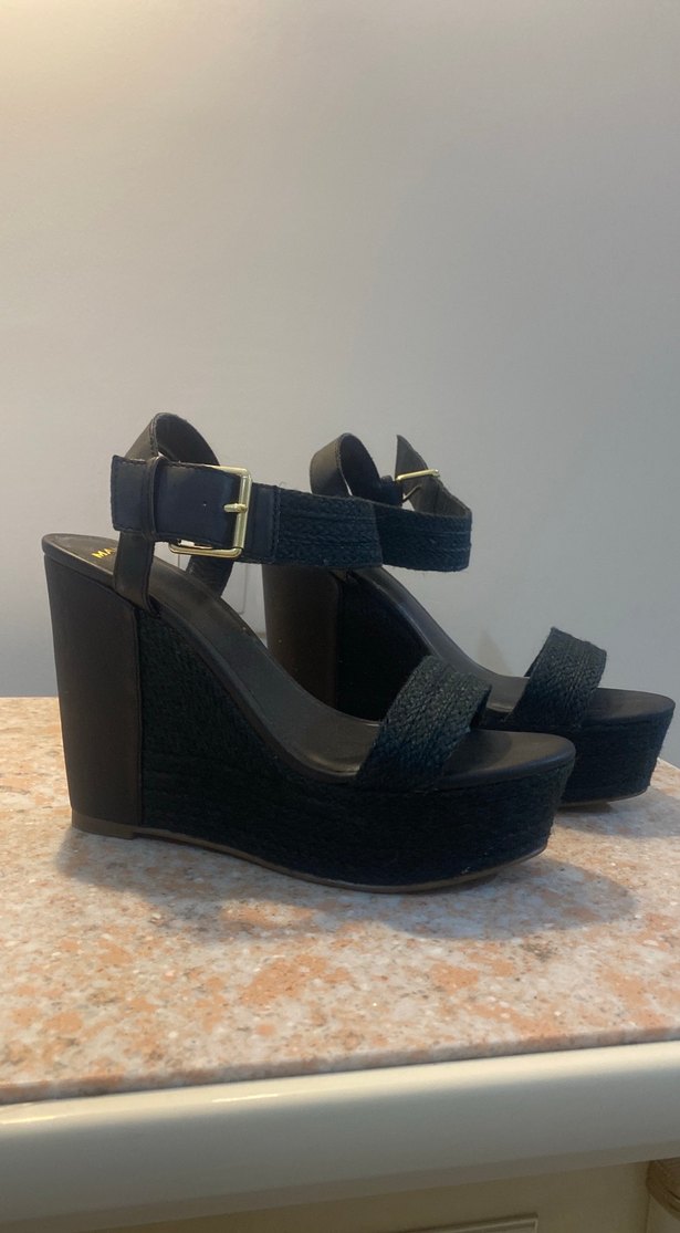 Mango marka,Siyah Yılan Desenli Tokalı Dolgu Topuklu