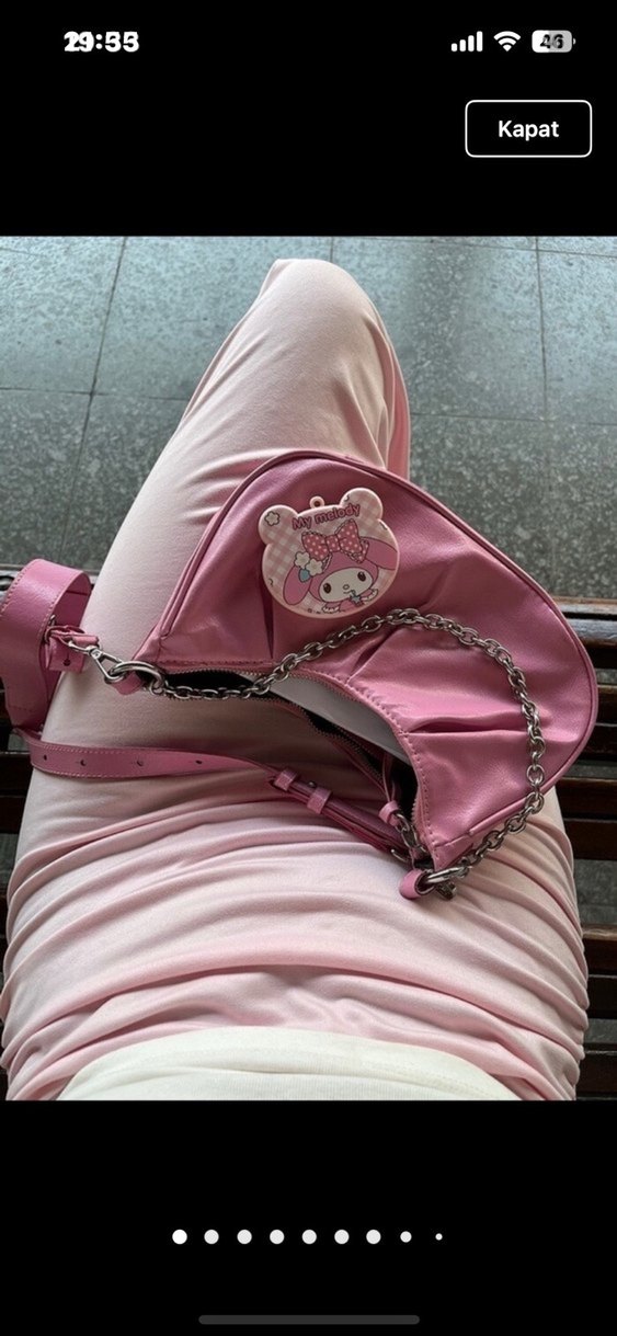 Pastel pembe renkte, tokalı ve baskılı desene sahip kadın çantası. Sentetik kumaştan, trendy casual ve Parisian street wear tarzına uygun.