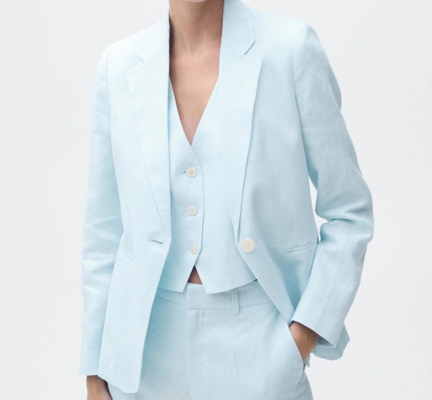 100% keten kumaş. Düz kesim. V kesim yaka. Devrik yakalı. Düğmeli manşetli uzun kol. Önü iki şerit cepli. Etek ucunda arka yırtmaç. Önü düğmeli. İç astar. Etiketli hiç giyilmedi görseldeki renk