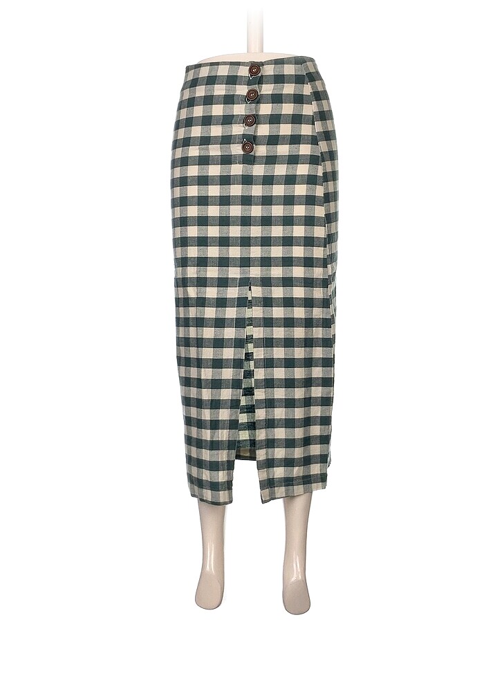 kendinden desenli düğmeli yırtmaçlı Malzemeler Pamuk Ölçüler Bel: 33cm, Uzunluk: 78cm Aynı gün kargoya verilir. Kontrolleri Gardrops tarafından yapılmıştır.