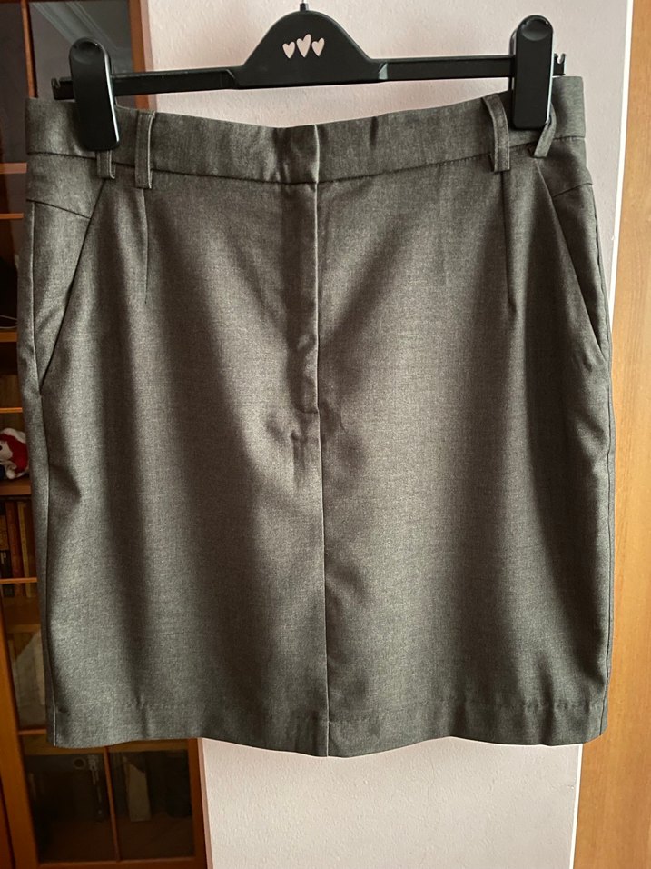 Mango, diz üstü, yanları ve arkası cepli beli kemerli, içi full astarlı ,regular fit kesimle, ofis için uygun etek. Bel ölçüsü 80cm, basen ölçüsü 107cm, etek boyu 51cm.. yepyeni. 42/44 beden için uygun