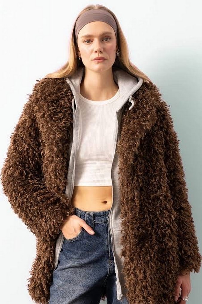 Mango Model Peluş Kadın Uzun Kollu Mont