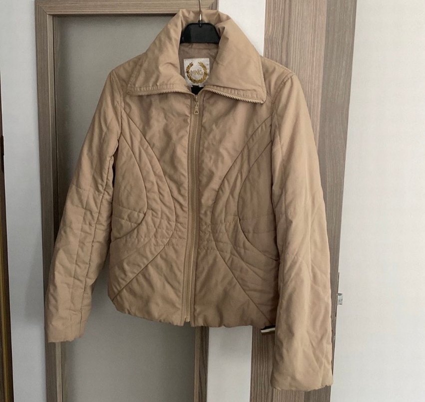 Bej renkli, süet kumaştan yapılmış kadın ceketi, fermuarlı önü ve uzun kolludur. Notch yaka ve midi uzunlukta olup, rahat bir kesime sahiptir.