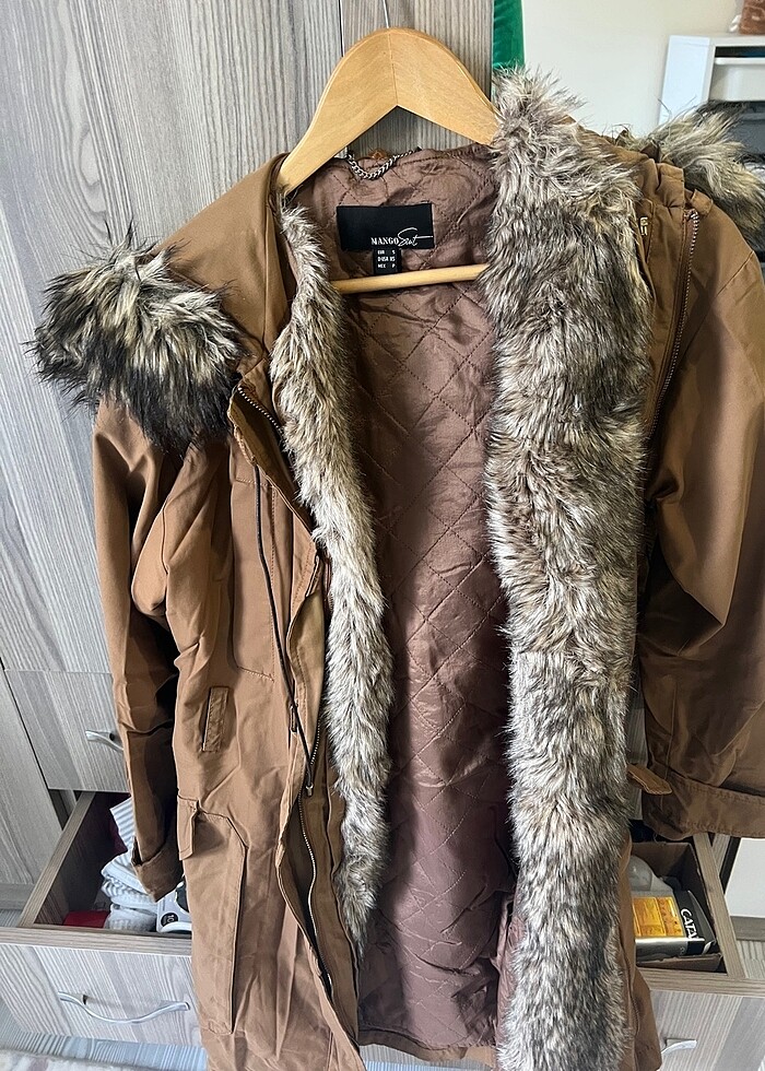 Ürünün iç astarında renk değişimi var dış tarafta yok istenirse içteki kürk çıkarılabılır ayrı fermuarlı var kapşon kürkü çıkarılabılır s-m uyumlu kalıbı geniş