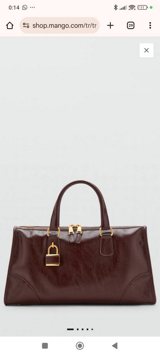 SATILDIII!!!!!!! Deri etkisi. Parlak yüzeyli. Dikdörtgen tasarım. İki kısa el kulbu. Çıkarılabilir uzun çapraz askı. Fermuar kapama. Kilit detayı. İç astar. Yeni sezon hiç kullanılmadı