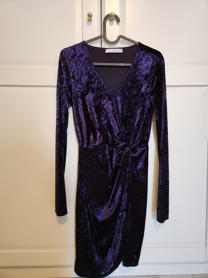 Mango Parlak Mor İnce Kadife Mini Elbise