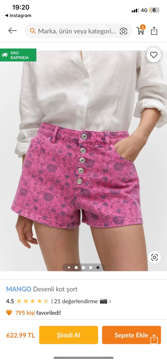 MANGO Pembe Desenli Mini Kot Şort