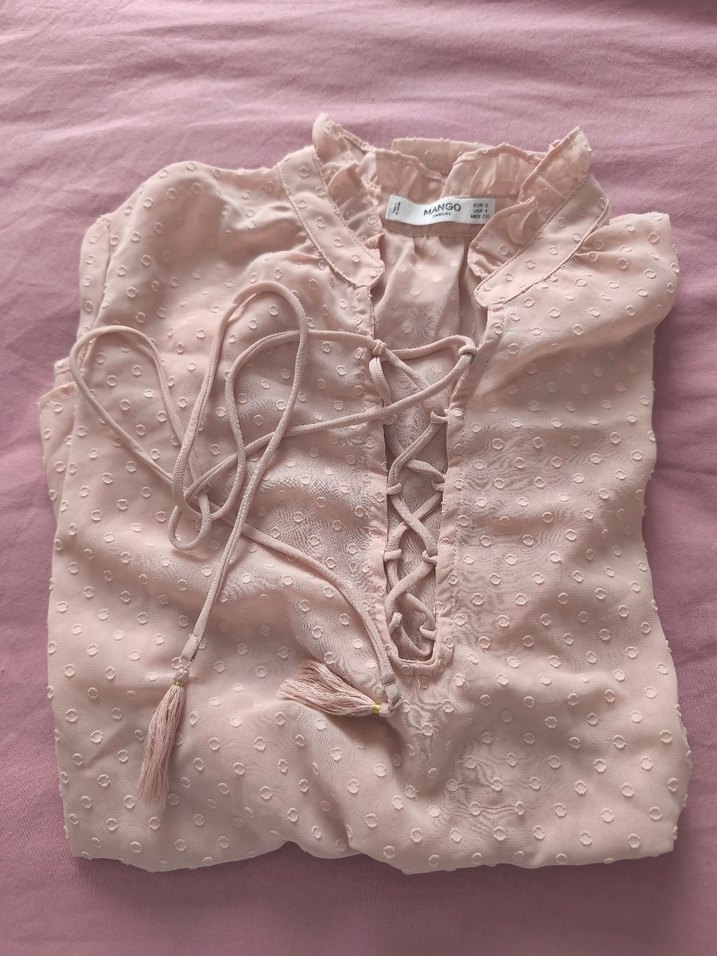 Mango Puantiye Detaylı Pembe Bohem Bluz