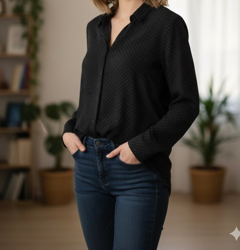 mango puantiyeli düğmeli ipeksi kumaş
