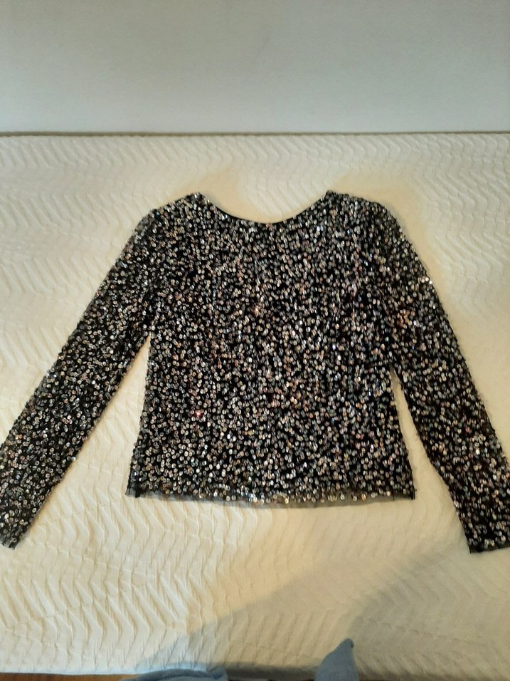 Pullu,payetli,içi astarlı,sırt dekolteli,polyester materyalli,çok az giyilmiş, iyi durumda,çok şık,uzun kollu abiye bluz