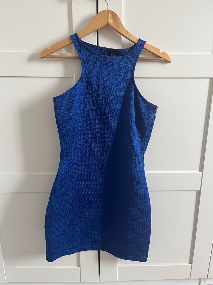 Kolsuz, yüksek yakalı, vücuda oturan midi elbise, parlak örme sentetik kumaştan yapılmıştır. Minimalist tasarımı cesur sokak stili ve romantik buluşmalar için uygundur.