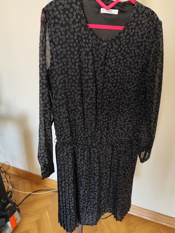 Siyah uzun kollu, sifon pileli astarlı şık şifon elbise L beden