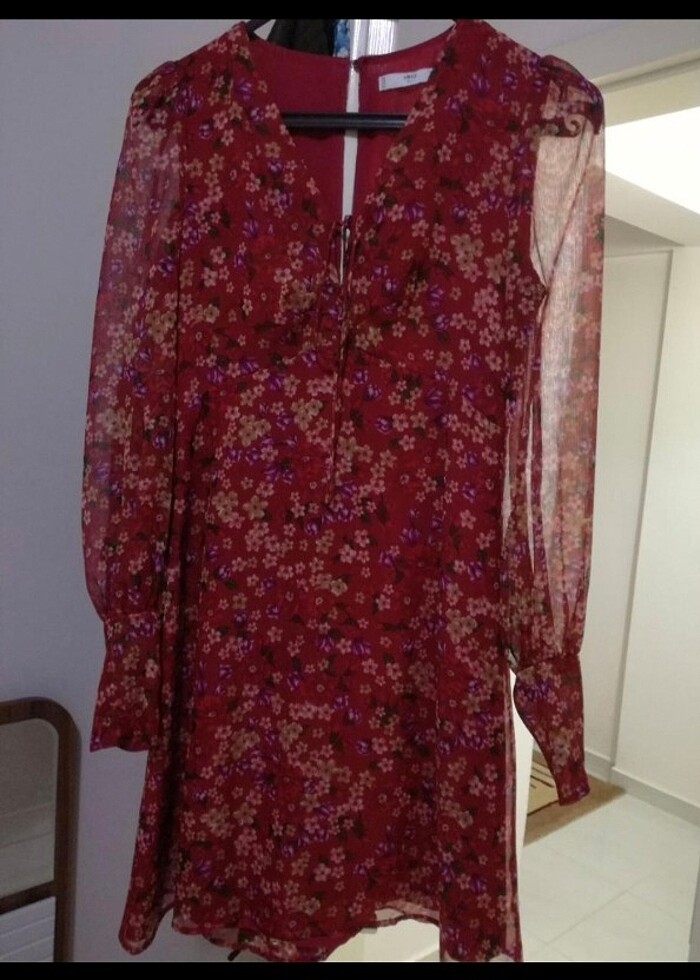 Sıfır üründür.Manşet kol şifon elbise. Elbisenin ikinci fotosuna dikkat ederseniz boyundan sırtına kadar iki düğmesi ile şekillenen sırt dekoltesi var.önden bağcıklıdir. Çok severek aldım ama hiç kullanamadım.#mangoelbise #şifonelbise #kısaelbise #sırtdekoltelielbise #mango #elbise #çiçeklielbise
