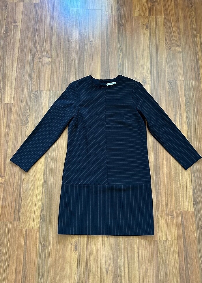 Çok şık ofis elbisesi, lacivert çizgili, kırışmaz kumaş, yepyeni, çok az kullanıldı