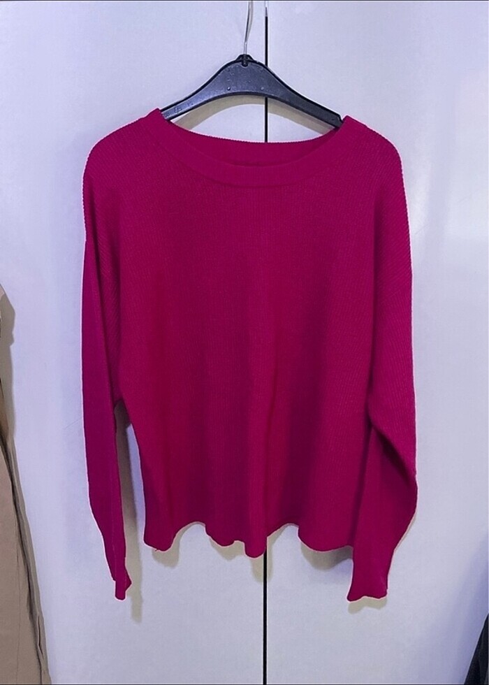 Hiçbir deformesi yoktur, çok tatlı bir fuşya tonu kazak