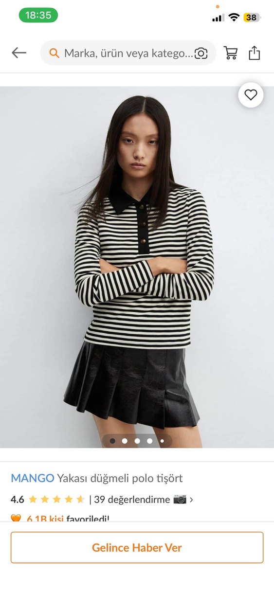 MANGO markasının siyah beyaz çizgili, düğmeli polo yaka uzun kollu tişörtü. 1 kere giyildi M beden ama dar kalıptır sorunsuzdur