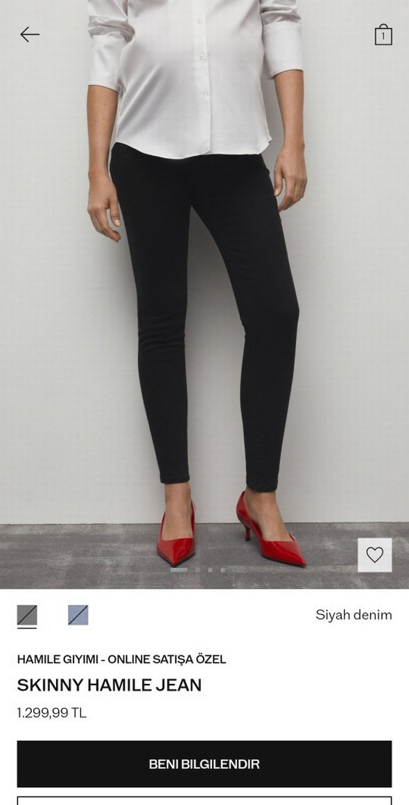 Siyah denimden yapılmış, normal boy ve regular kesim hamile skinny jean. Ofis için uygun, minimalist ve şık bir görünüme sahiptir.