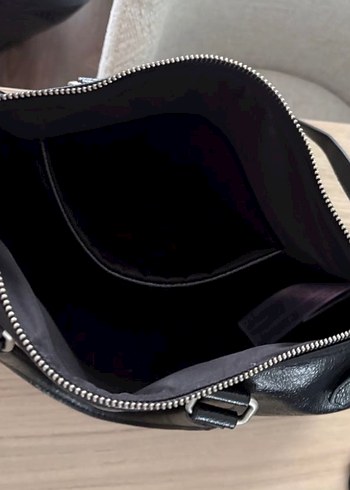 Etiketi yok hiç kullanılmadı. Siyah deri, fermuarlı kadın çantası, minimalist ve çağdaş tasarıma sahip, günlük kullanıma uygun şık bir modeldir.